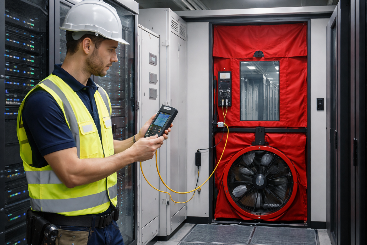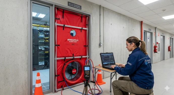 Esta prueba es fundamental en salas protegidas con sistemas de extinción por gas, ya que una fuga puede reducir la concentración del agente y comprometer la efectividad del sistema en caso de incendio.